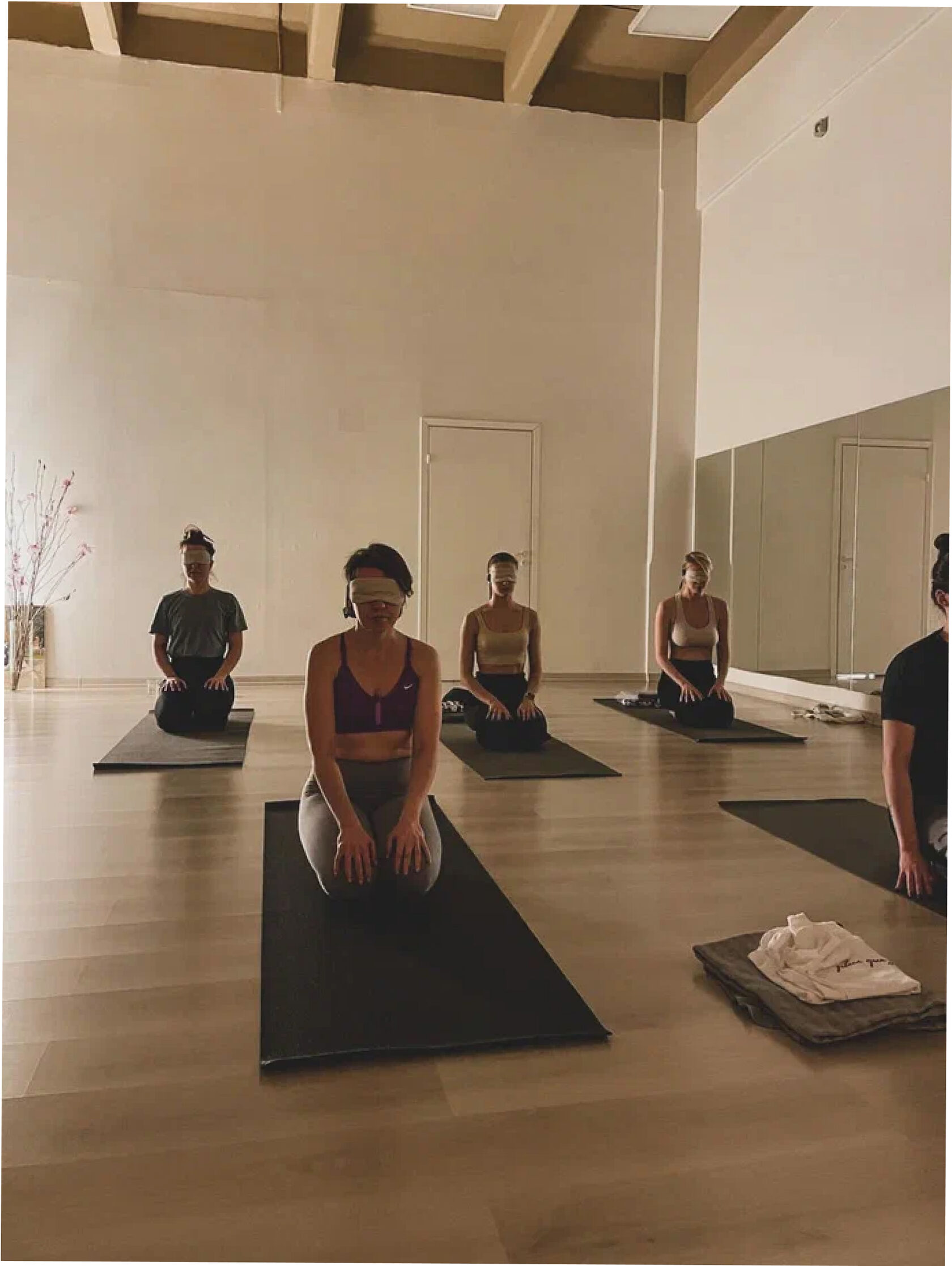 Очень необычный опыт более острого ощущения себя, своего тела, где-то боли, растяжения и расслабления. Только ты, голос учителя и изредка похрустывающие суставы, практикующих рядом. Очень круто не сравнивать себя с другими, насколько твой баланс ровнее. Иногда сложно возвращать фокус на ощущения в теле, но это точно мощный опыт развития концентрации и фокуса.